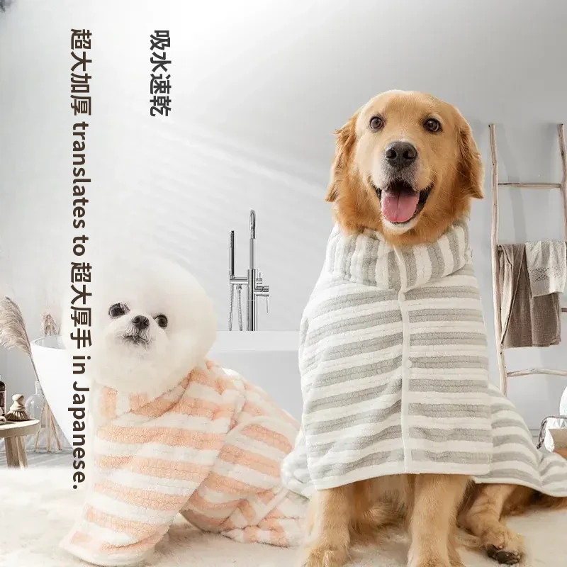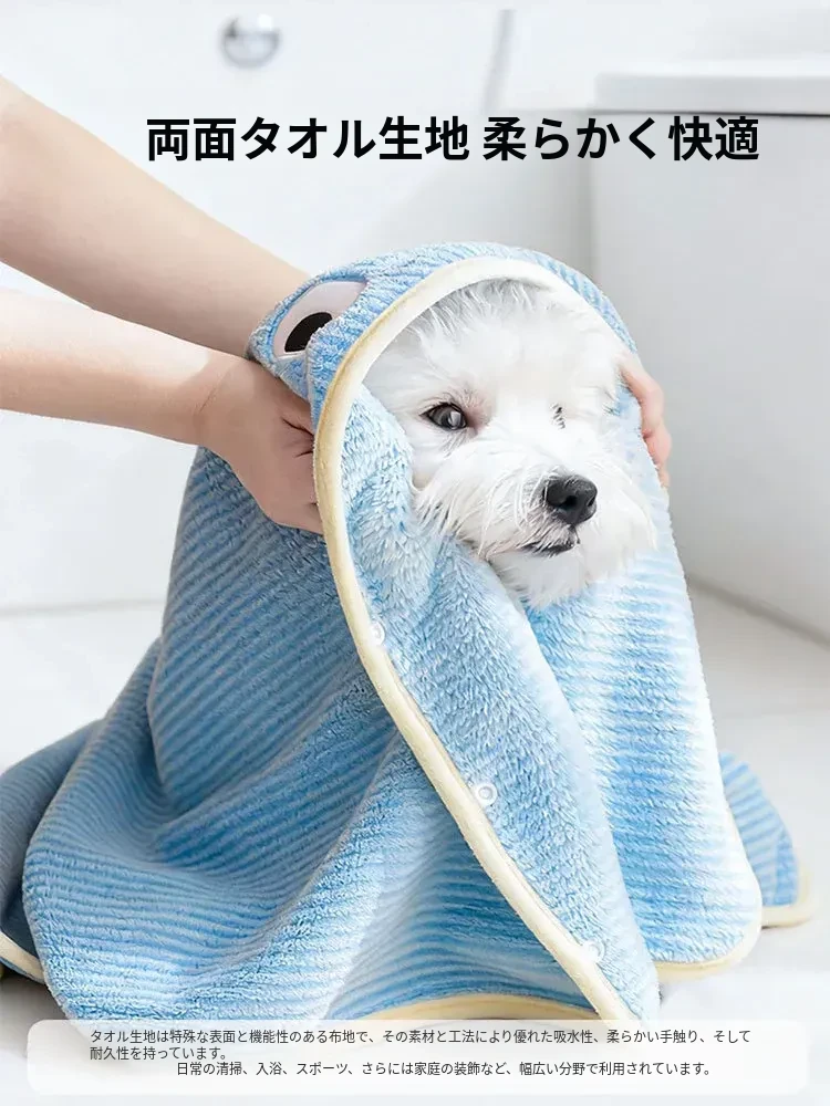 ふわふわ厚手ペットバスローブ!吸水速乾でゴールデンレトリバーやビションフリーゼも安心。猫ちゃん用毛布としても使える、ビッグサイズバスタオルでお風呂上がりのひとときを快適に!
