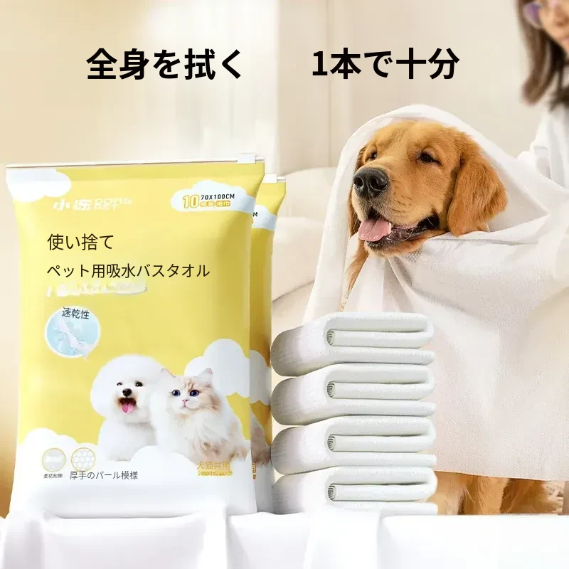 ペット専用使い捨て吸水速乾厚手バスタオル - ゴールデンレトリバーやトイプードル、猫ちゃんにぴったり!素早く毛を乾かし、愛するペットを快適に保つための必需品です。