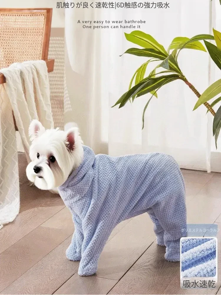 ペット用犬猫バスローブ!驚異の吸水力と速乾性で全身を包み込む、4脚タイプのバスタオル。中型・大型犬にも対応した高品質なタオルで、愛犬・愛猫のお風呂時間をもっと快適に!
