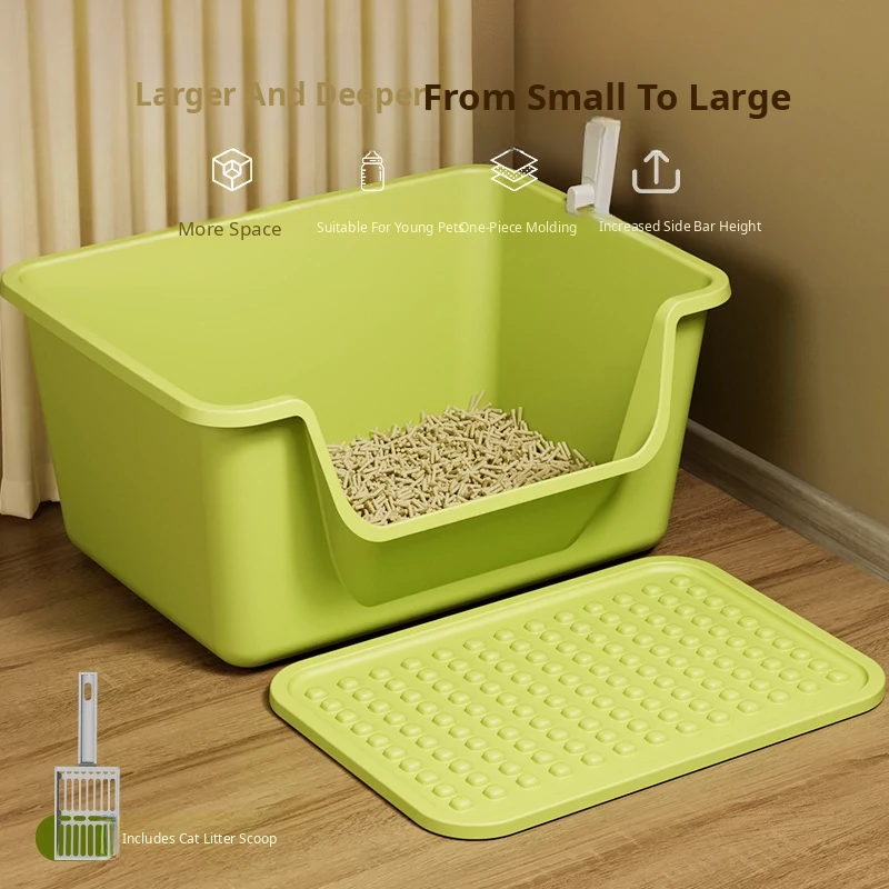 Elevated Jumbo Cat Litter Box - Open Design with Splash Guard, Odor-Controlled for Kittens and Adult Cats, Universal Pet Toilet Solution