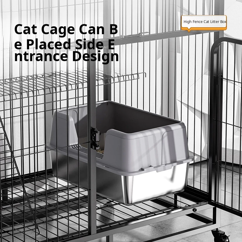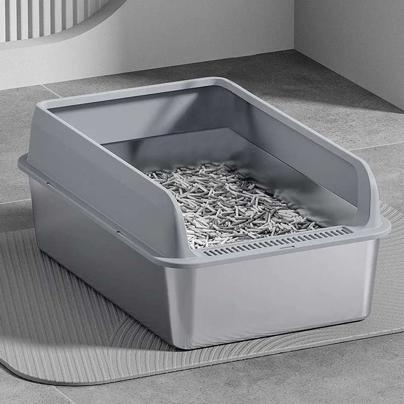 Large Open Stainless Steel Cat Litter Box with High Surround to Prevent Spills - Deep Semi-Closed Litter Toilet for Cats