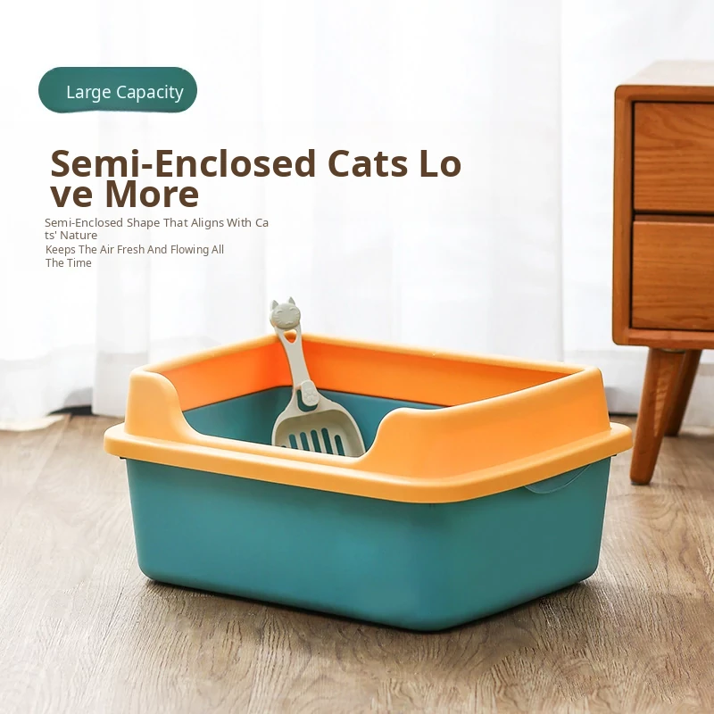 Large Semi-Enclosed Cat Litter Box - Splash-Proof Design for Kittens and Adult Cats, Includes Free Litter Scoop, Perfect for Mess-Free Cat Care!