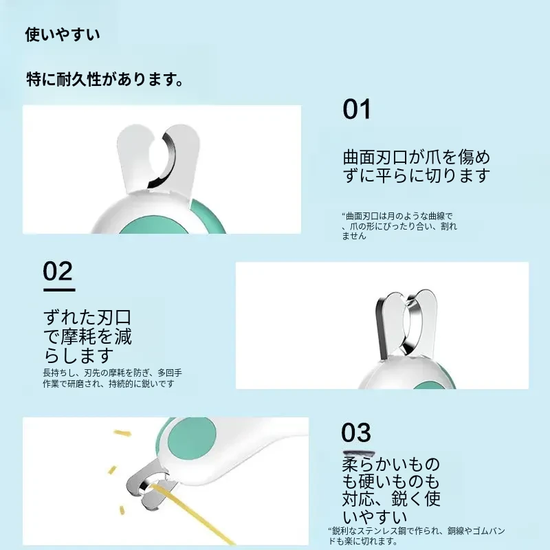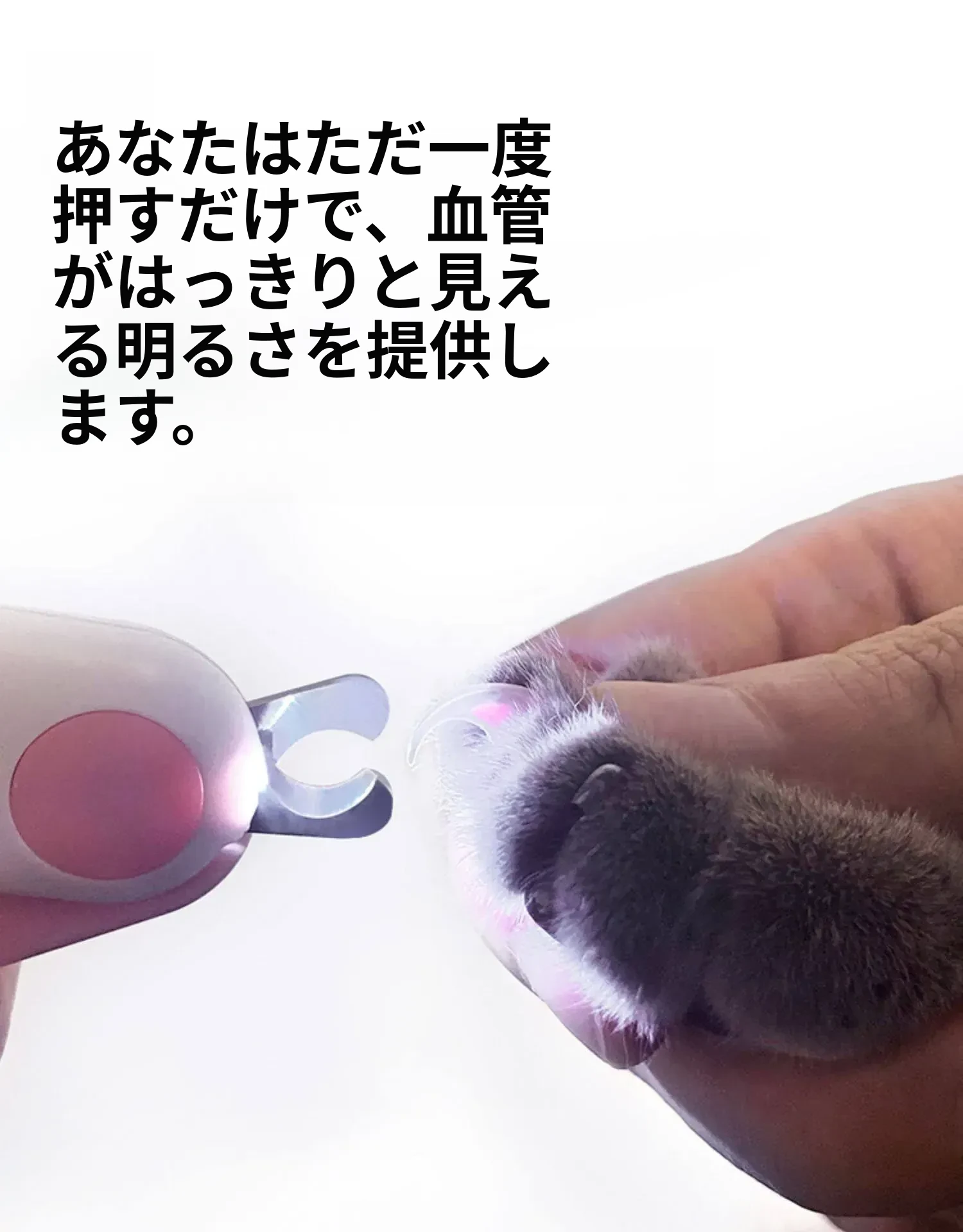 ペット用ネイルクリッパー LEDライト付き!猫や犬、ウサギ、子猫、小犬の爪切りに最適。血管ラインを照らして安全にトリミング!愛するペットの爪を簡単にケアしましょう!
